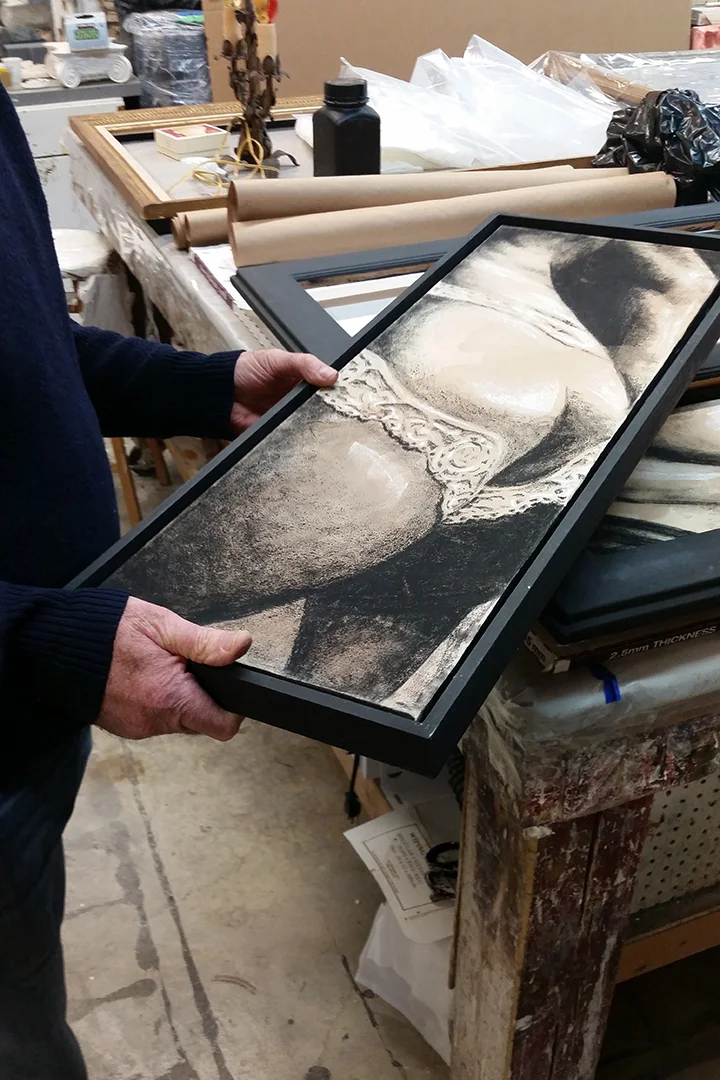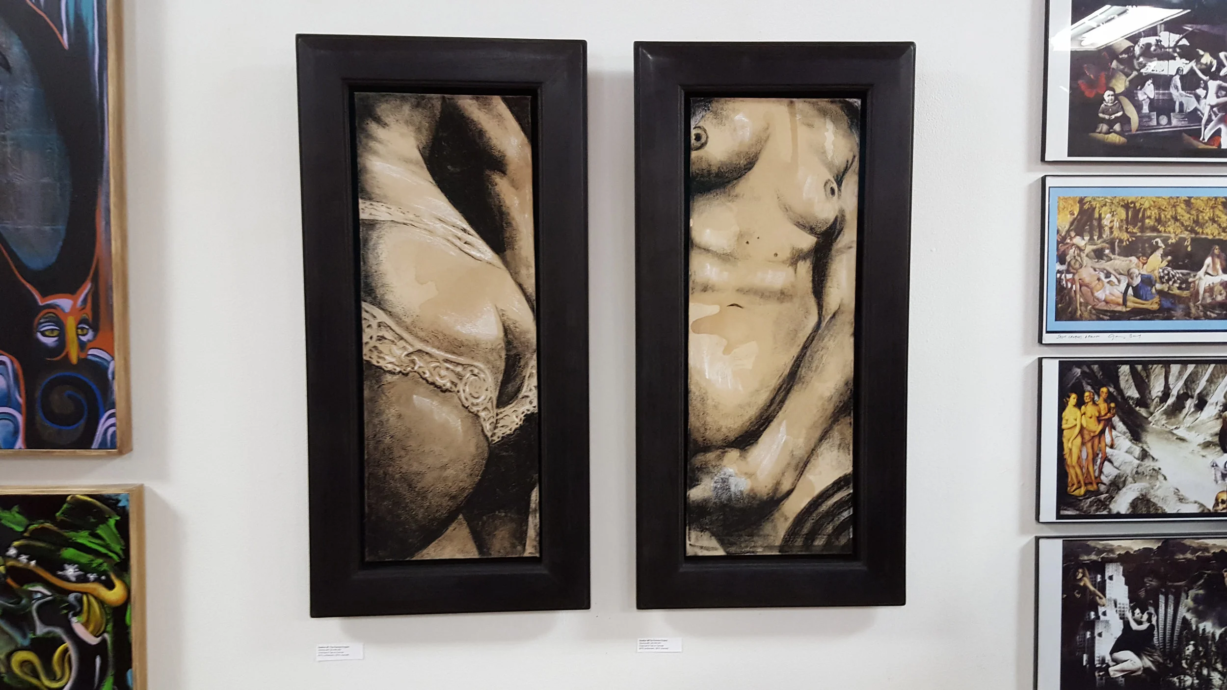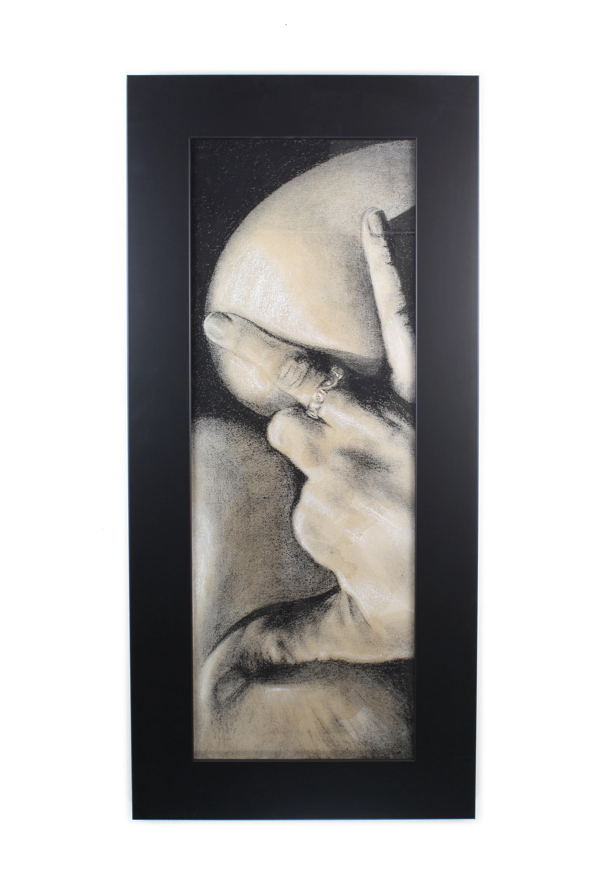 The charcoal series presents the female body as a canvas for comment and feedback. The drawings, based on mobile phone photos, are aesthetic reflections on a woman's body as an object of desire from her point of view. The project juxtaposes a disposable art form, the digital “selfie,” and the female figure on canvas as high art.